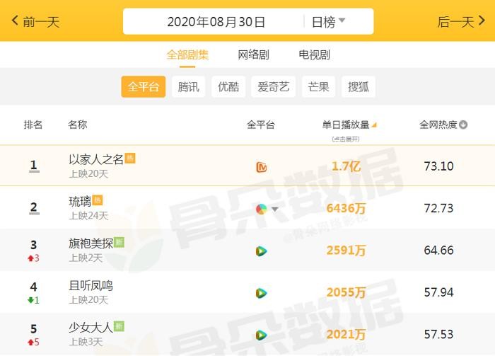 最近不少新剧上映,都想要在9月份的时候播出,还有许多作品,也是即将完结,而很多电视剧都是我们喜欢看的,都有大家喜欢的明星演员,就让我们看下,近期全网“最火 ”的5部剧,第三名刚播2天,榜首依旧是它!