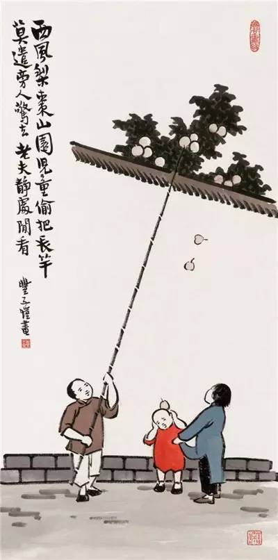 西风梨枣山园儿童偷把长竿, 莫遣旁人惊去老夫静处闲看