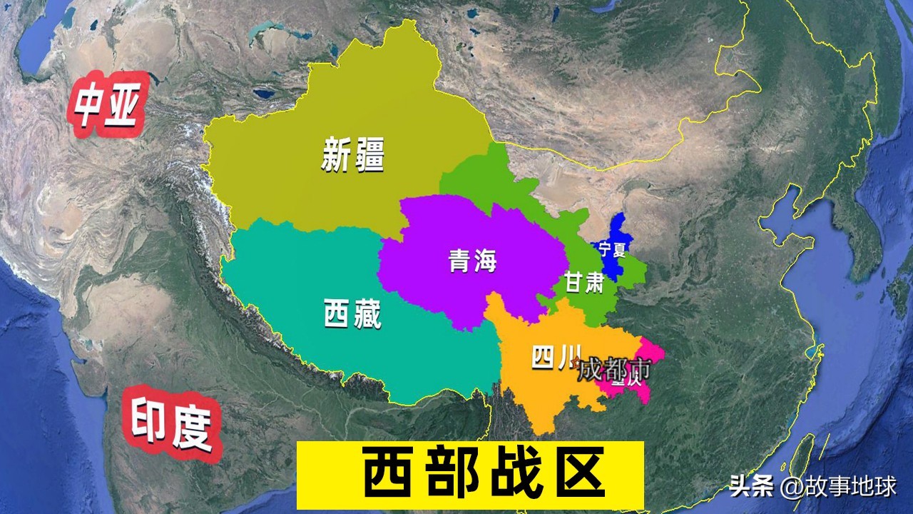 西部战区 下属区域 新疆,西藏,甘肃,宁夏,青海,四川,重庆七个省市,