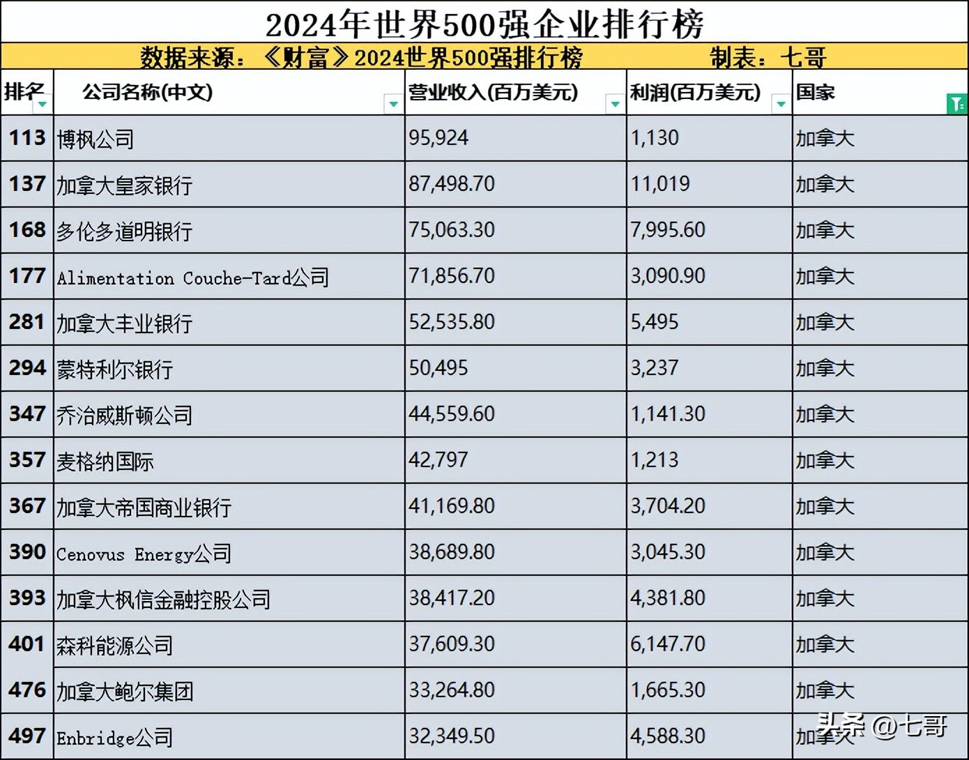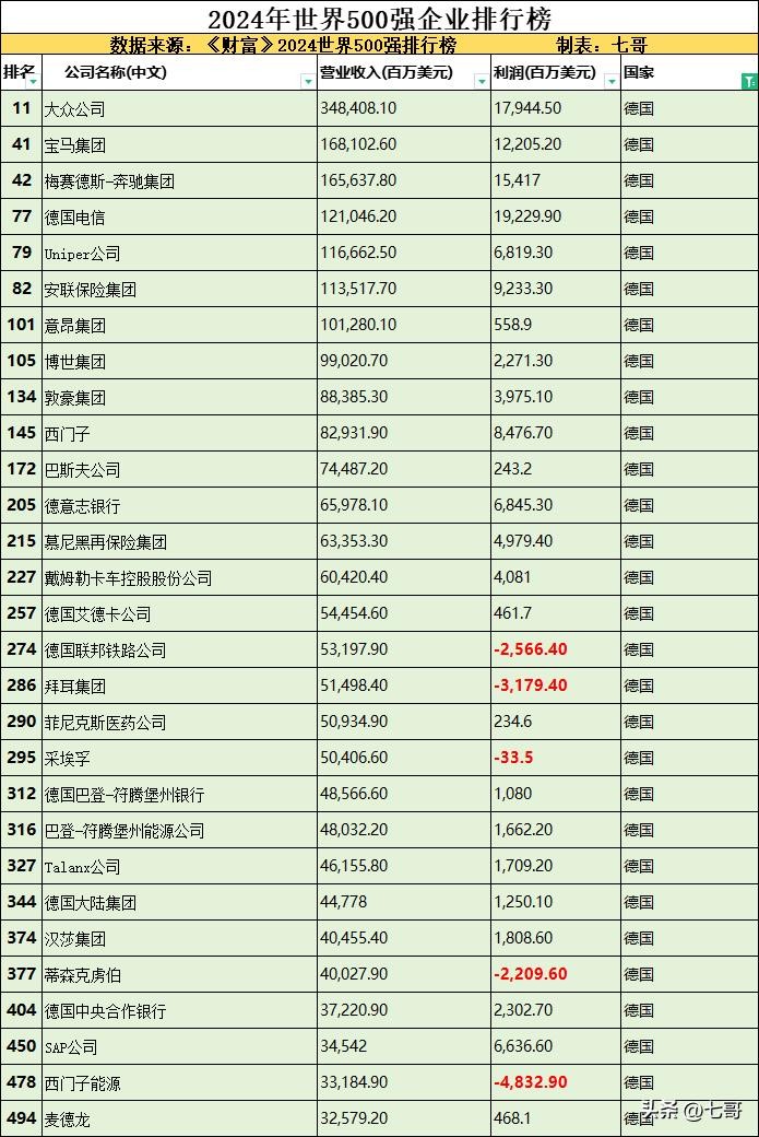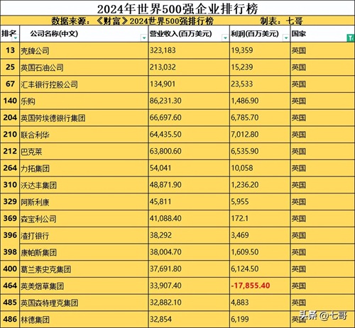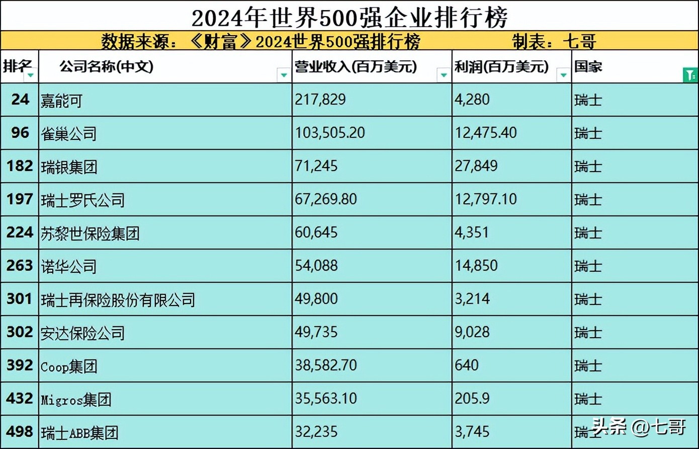 备注:瑞士和荷兰都有11家企业登榜,但是瑞士企业的排名及总营业收入均稍领先荷兰,故小编把瑞士排名第九。