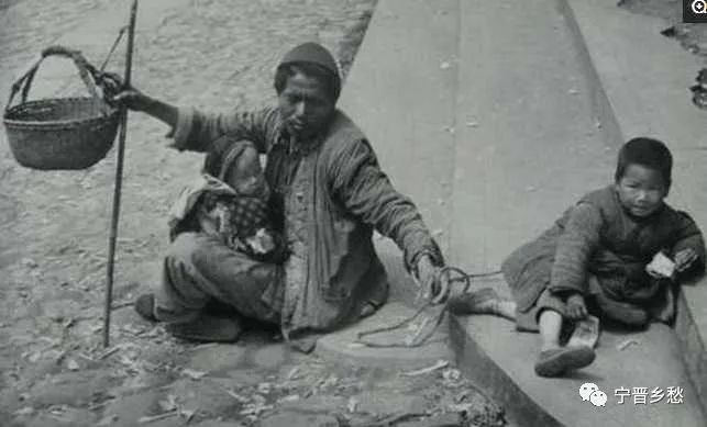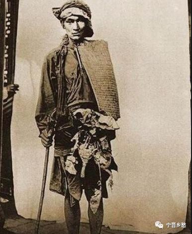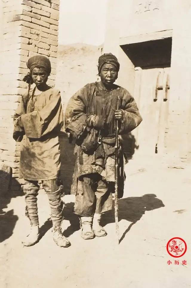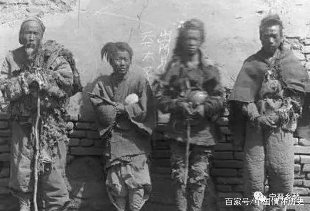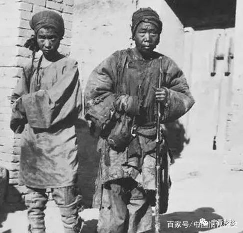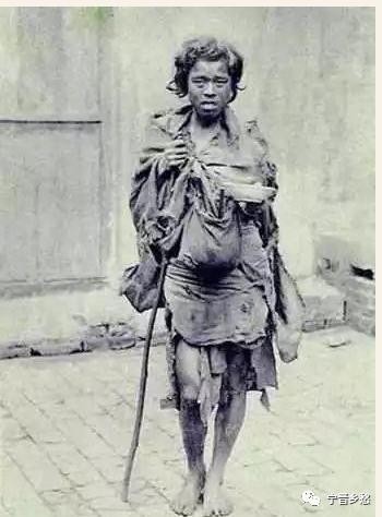 清末照片,长途迁徙逃难乞讨的老弱妇孺,手中的打狗棒是好帮手。