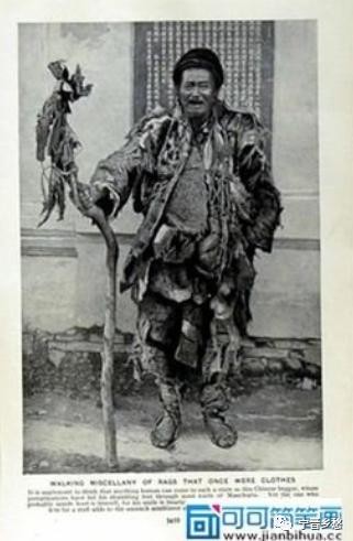 清末的乞丐,拿着打狗棍。