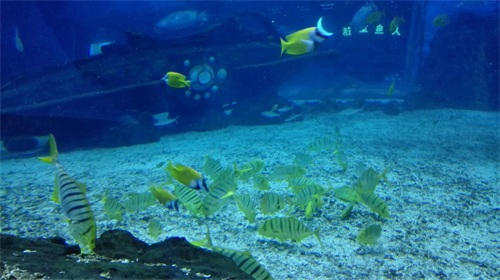馆内共分为十一大展区,分别为:南极企鹅岛、神秘北极村、海底隧道、远古海洋、鲨鱼港湾 、珊瑚海、白鲸湾、柳穿鱼巷、海草堂、奇趣鱼馆(含虾兵蟹 将府)、未来水母馆。