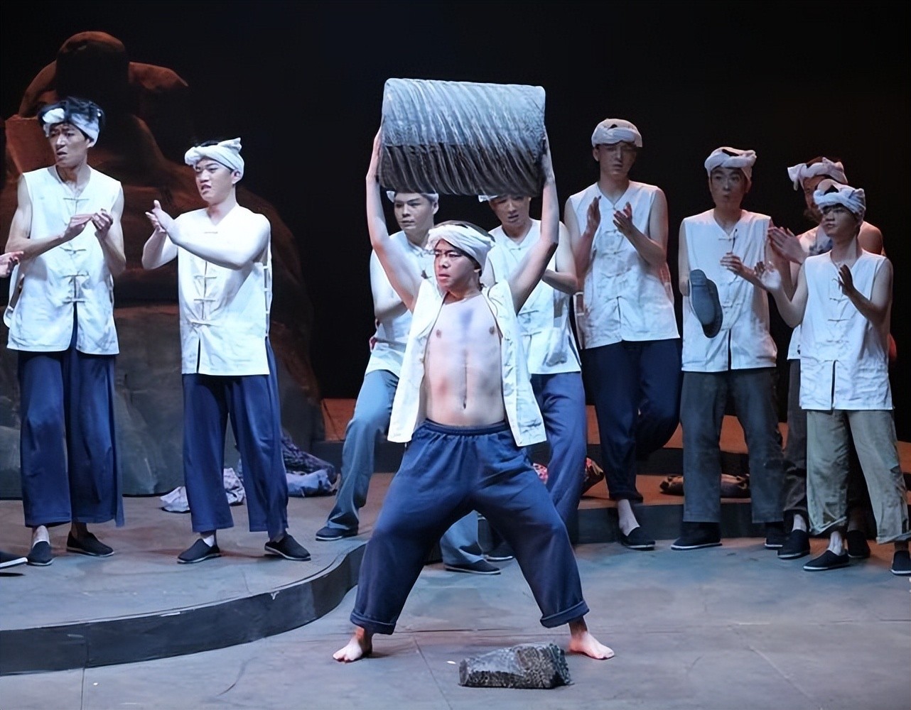 同时,转台采用类似于"八卦"的设计,传达了一种"宿命论"观念和无力感,暗示着桑树坪人民无法摆脱既定命运,在人、地和自然之间挣扎,找不到出路。舞台设计作为"先入为主"的因素,与观众产生最初步和最主观的联结,不仅在布景上为剧本的叙事提供支持,而且为话剧主题的建构铺下了基础。