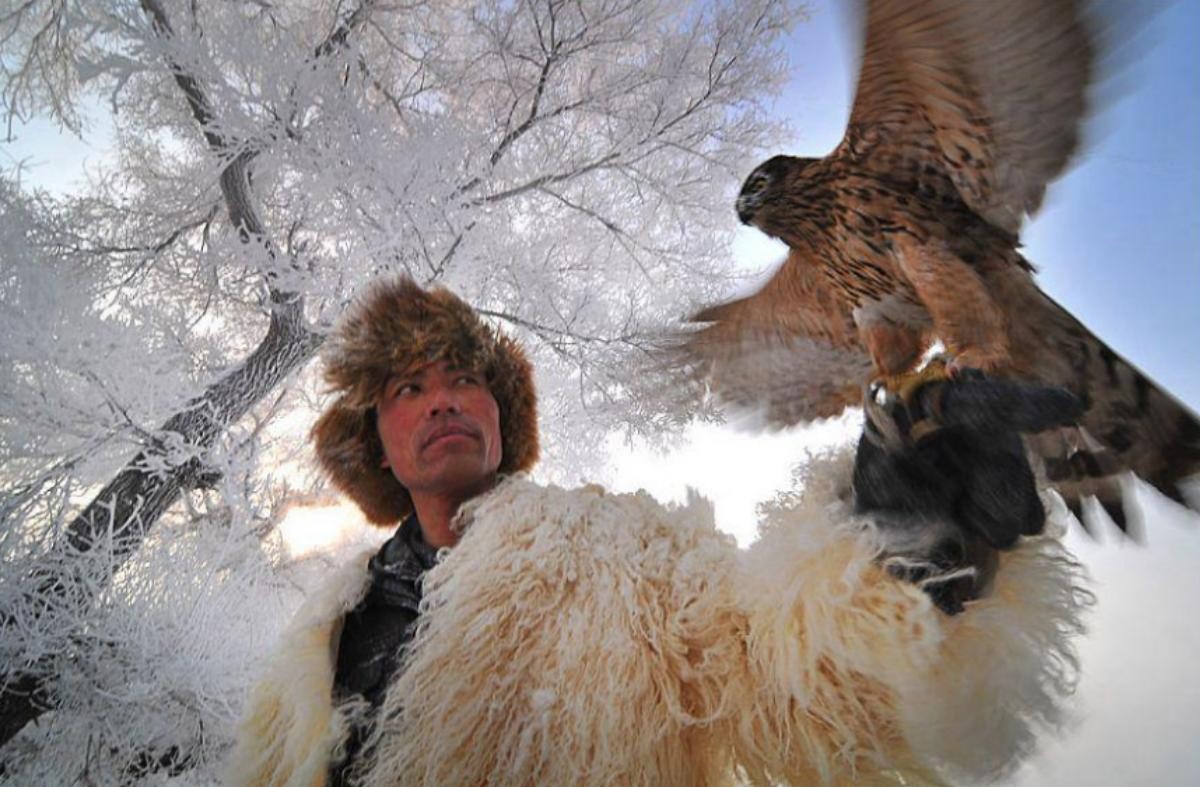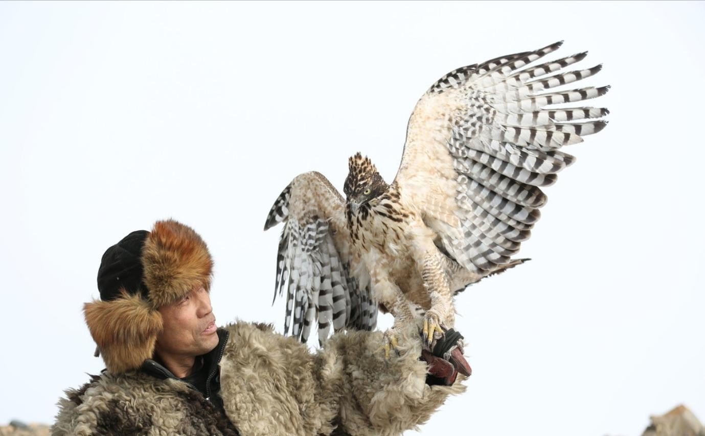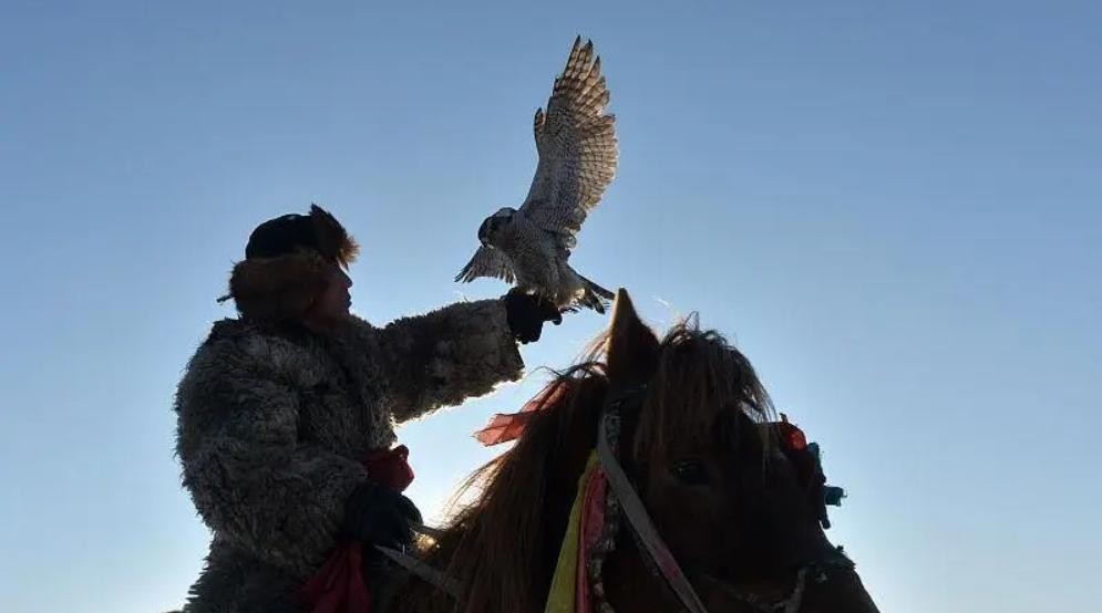 将网设置好后,捕鹰人就守在网边直到海东青自投罗网,被称之为“蹲鹰”,这一蹲就是几十天。捕到海东青后,捕鹰人还要拜谢神鹰格格。仪式感满满,把神鹰唬得一愣一愣的。