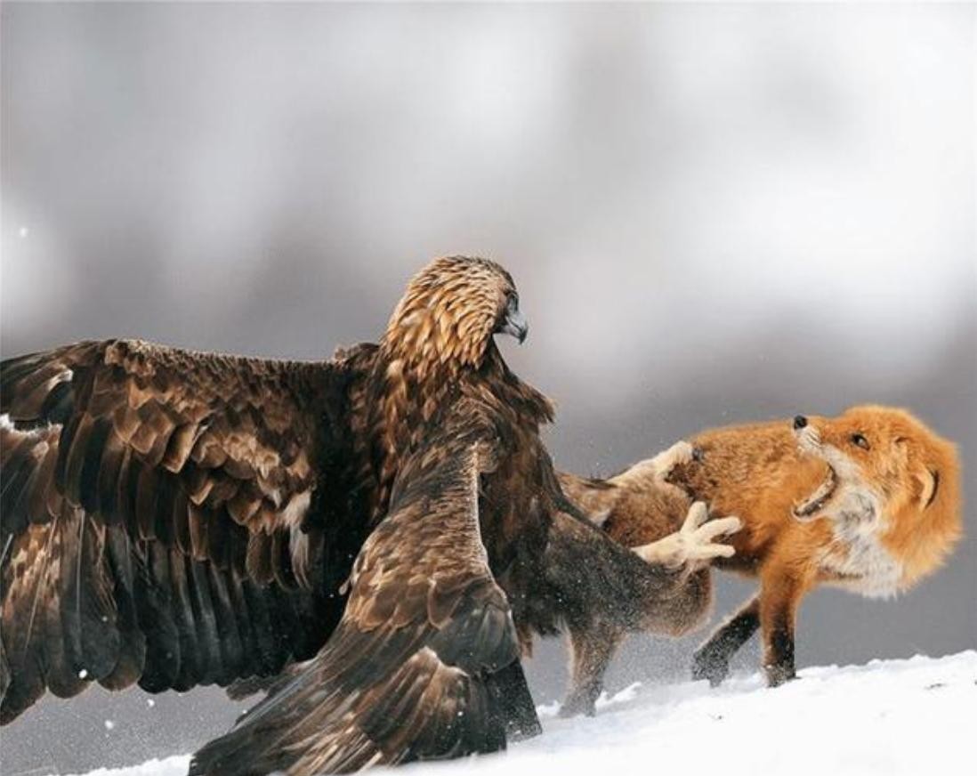 在鸟类捕杀中,体型的大小往往决定着战斗力的大小,一只体长约为78-100厘米的金雕,对战比它小的海东青具有明显优势。