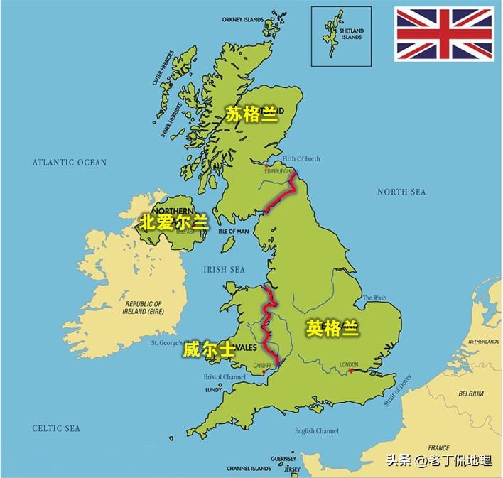英国地势西北高、东南低。其西北地区主要地形是高原;而东部和东南部则主要是低地,他们是整个欧洲平原的组成部分。奔宁山脉纵贯北部和中部,平均海拔200~500米,山地两侧有丰富的煤、铁资源。