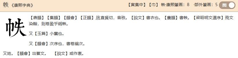 二、“帙”字基本信息