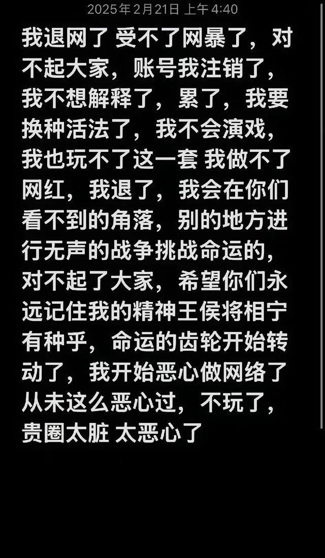 AKA 刀枪不入与帝师骂战白热化时,凌晨四点 AKA 发布退网声明,表达对骂战厌倦和对网络失望,粉丝不舍并指责帝师。可当天下午 AKA 迅速删除声明更新视频,网友直呼 “活久见”。有人觉得他性格直爽一时冲动退网,冷静后回归;也有人认为是精心策划的 “流量游戏”,利用低谷发声明、高峰删声明更新视频来收割关注度。不管怎样,AKA 此举让自己更被动,形象和公信力受损,帝师则借此巩固优势。