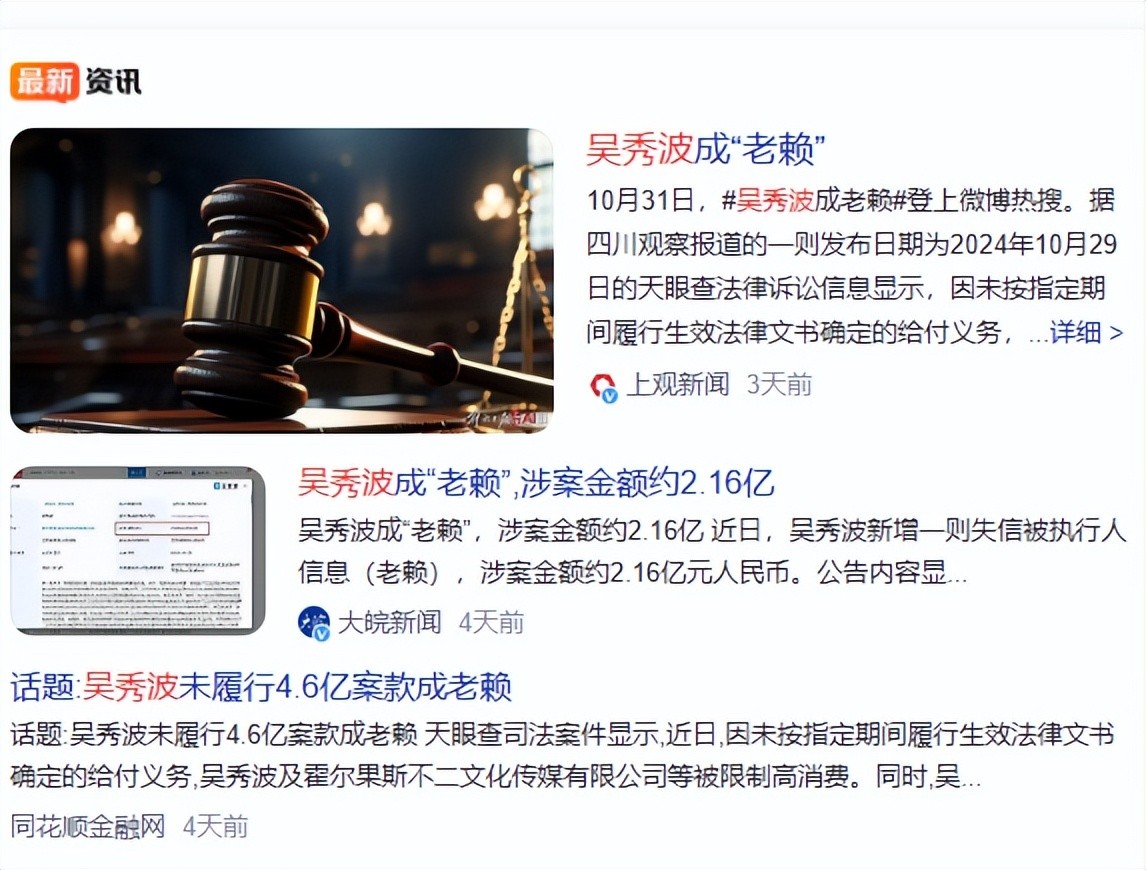 这也就是为什么已经退出荧幕那么久的吴秀波还能够背上巨额债务的原因。