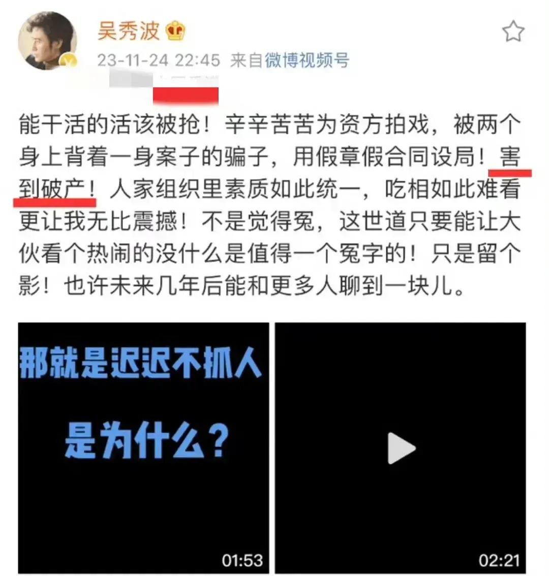 在去年11月份,吴秀波自被软封杀时候突然发文表示“自己被骗了”!