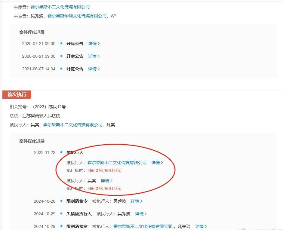 但自从塌房之后是黑料不断,近日又被网友爆出其公司被强制执行4.66亿元。