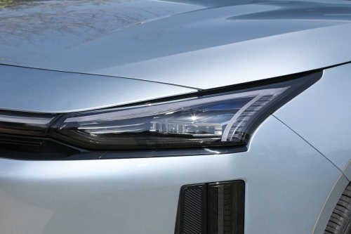 外观部分,银河L6 EM-i的外形设计比较立体和高耸,前后均采用贯穿式灯组,通过黑色外后视镜、竖条状通风口装饰和熏黑包围凸显运动气息,亮黑色侧窗边框和黑色车顶体现悬浮式效果,标配215mm宽胎(匹配16英寸、17英寸两种轮毂),所以这款车总体给人比较时尚的效果。标配AGS主动式进气格栅,可有效散热,且能随车速自动开合。贯穿式灯组很有辨识度,搭配精致的LED大灯组点亮后视觉冲击力强。