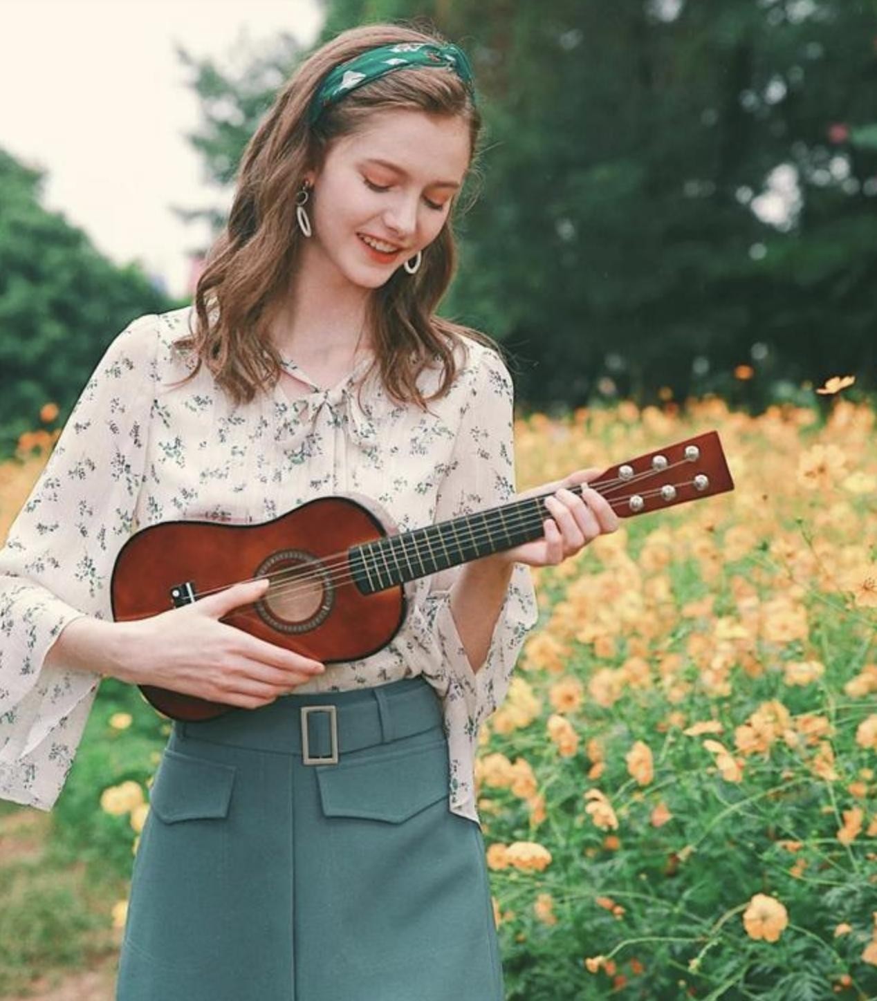 如今的她在公众的出现率并不高,但是相信以后必然还会重新回归到大家的视线。身穿着碎花雪纺衬衣搭配着蓝绿色裤子的她,真的看起来就像一个花仙子般清爽,而如此美丽的她,相信在下一次出现,必然能够给我们带来更多惊喜!