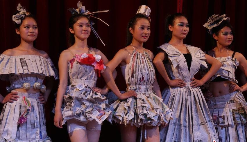 杭州某女大学生穿上“报纸礼服”时,真是惊艳众人,果然无论美女穿什么都好看!
