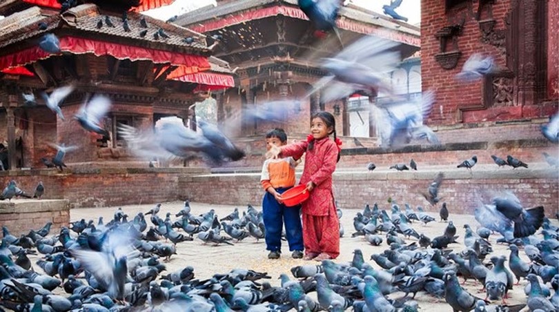 加德满都座落在喜马拉雅山南坡,这道天然屏障为城市遮挡来自北方的寒风,城市南面迎着印度洋的暖流,得天独厚的地理环境,使这里年平均温度20℃左右,气候宜人,终年阳光灿烂,绿树葱郁,鲜花盛开,有“山中天堂”之美誉,是世界闻名的游览胜地。