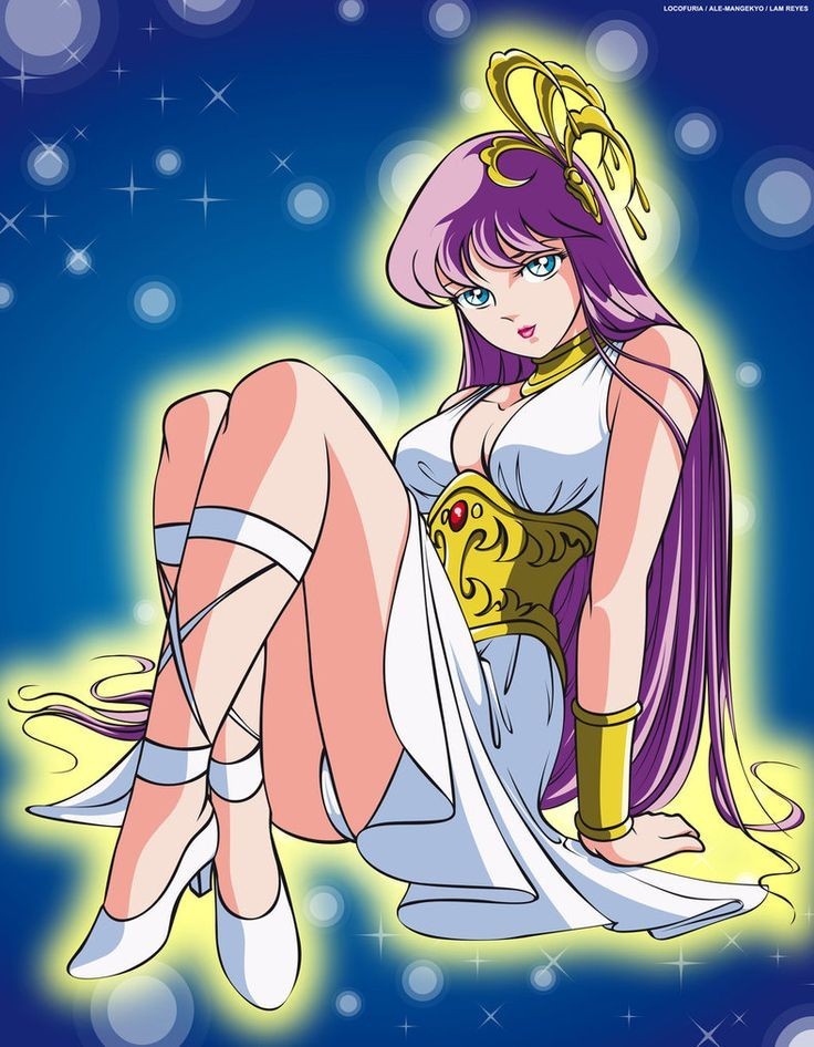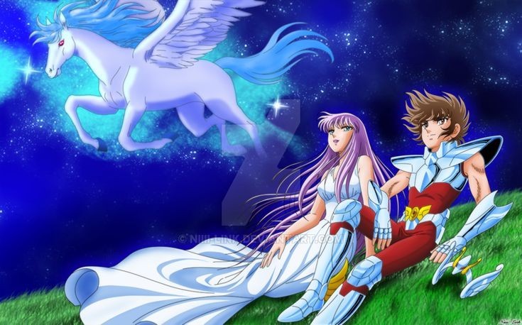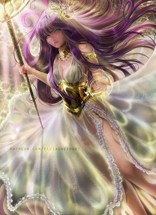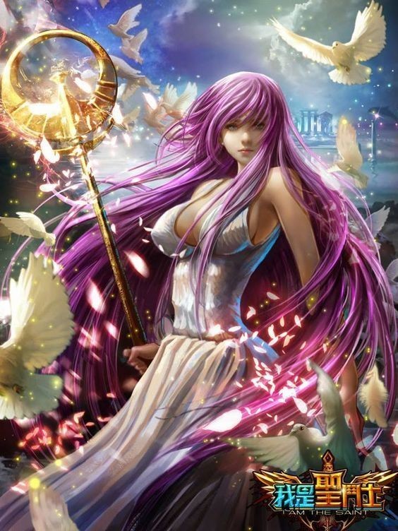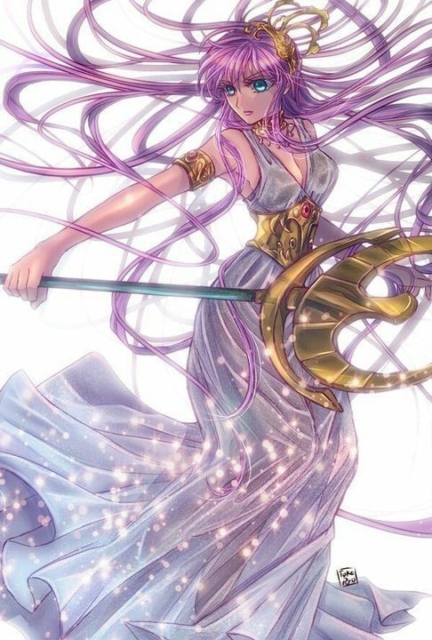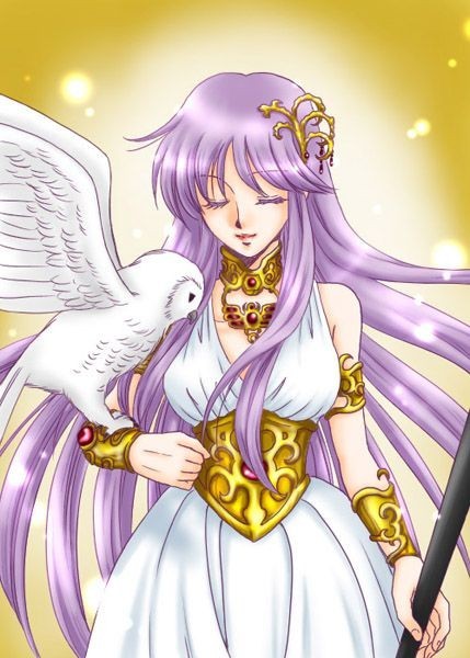 《圣斗士星矢》的女主角雅典娜,是希腊神话中的众神之一。每隔数百年,当世上被邪恶所笼罩的时候,便会降临人间的雅典娜的转世。气质高贵而又美丽。虽是司掌战争的女神,但从不会为个人喜好而掀起战争,她参与战争都是为了守护人类。十三年前,艾俄洛斯从假教皇的剑下救走还是婴儿的雅典娜,并把她托付给城户光政。