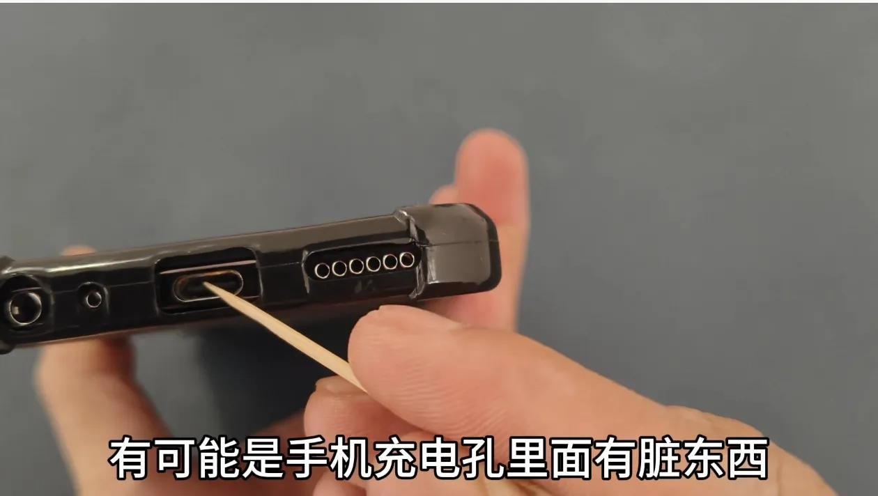 首先我们需要用到一根牙签,牙签两端特别的尖,我们可以用它,来将手机充电孔,给它刮一刮,哎有可能是手机充电孔里面有脏东西,或者灰尘太多之类,就会导致我们的手机在充电的时候,充电口松动,接触不良,甚至是充不上电。