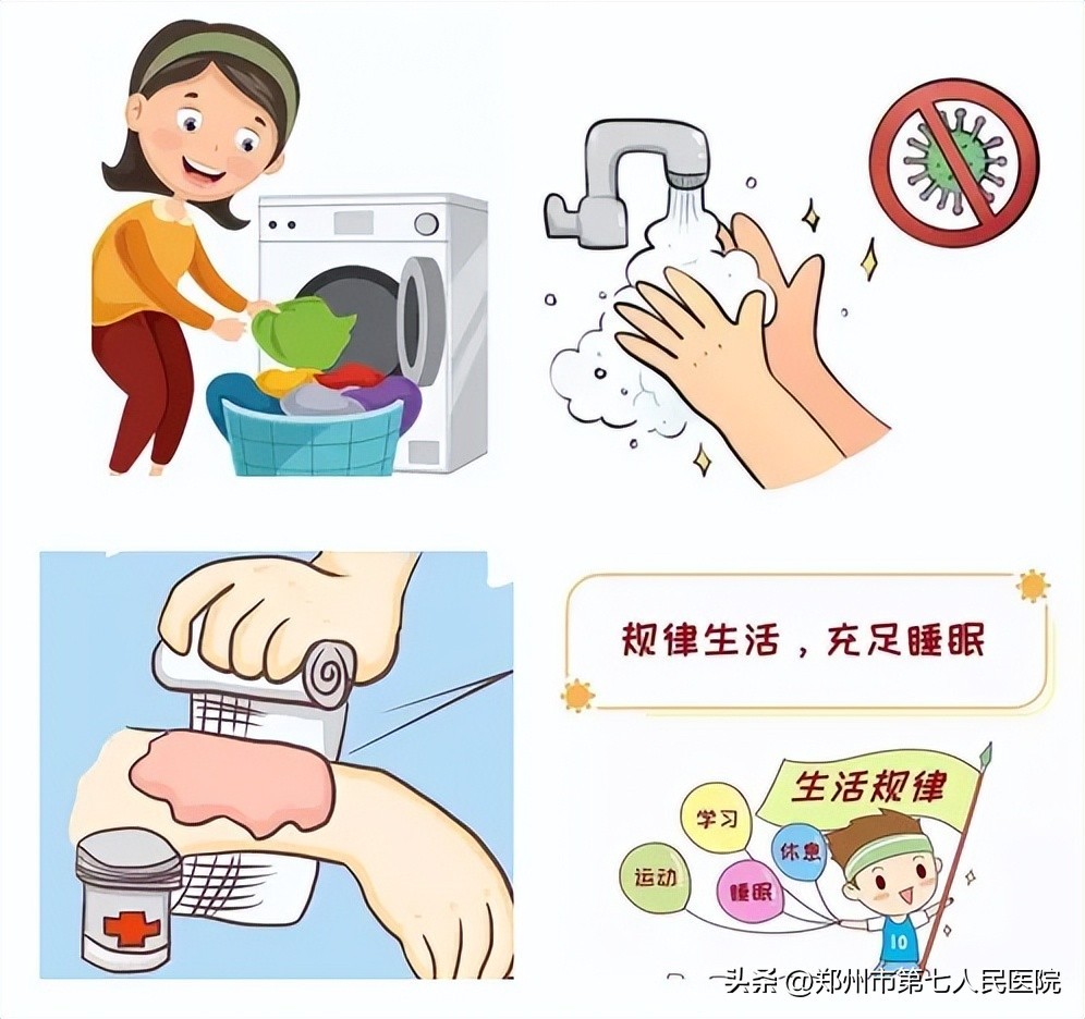 3.不要用手抠、挤、抓那些可能感染的部位,如有伤口应及时消毒处理。