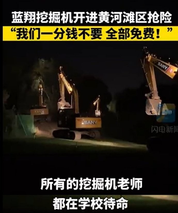说归说,闹归闹,蓝翔人始终是山东人,继承了山东人的朴实热心,就在10月1日当天,黄河出现汛情,蓝翔的师生们紧急出动,开着挖掘机就来黄河坝上救灾了,而且再一次展示出了他们的专业技能,连夜修建了3500米长的新堤坝,保护了2000多亩农田