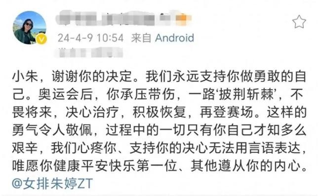 甚至在自己的爱徒朱婷回归国家队时,还公开发文为其加油。
