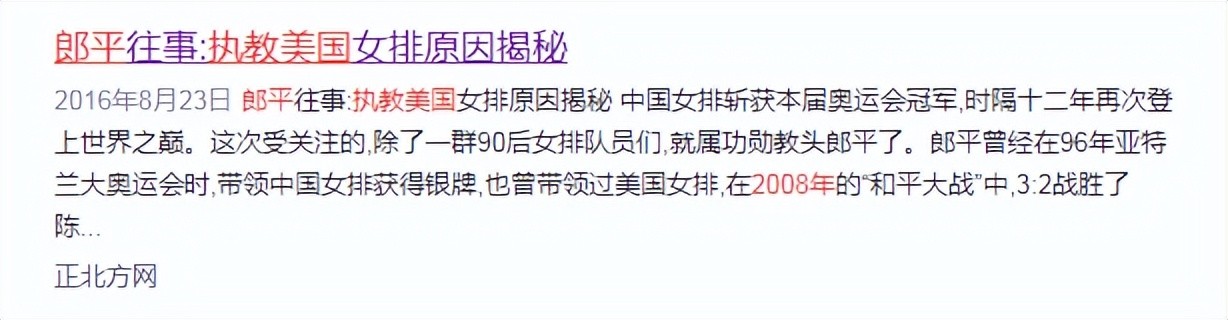 消息来源:2016年08月23日一正北方网一郎平往事:执教美国女排原因揭秘