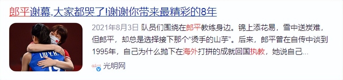 消息来源:2021年08月03日一光明网一郎平谢幕,大家都哭了!谢谢你带来最精彩的8年