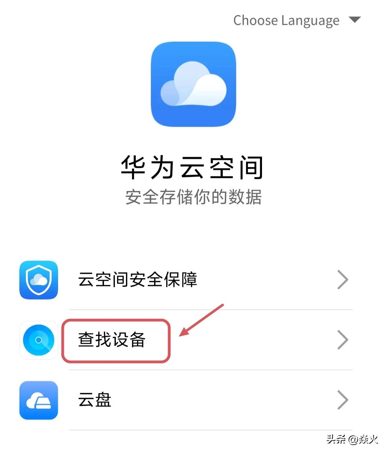 然后找到“华为云空间”,点击进入,选择“查找设备”。
