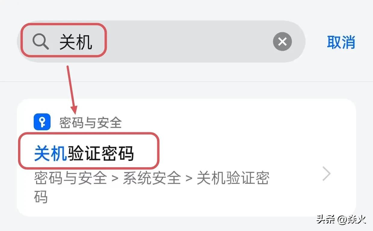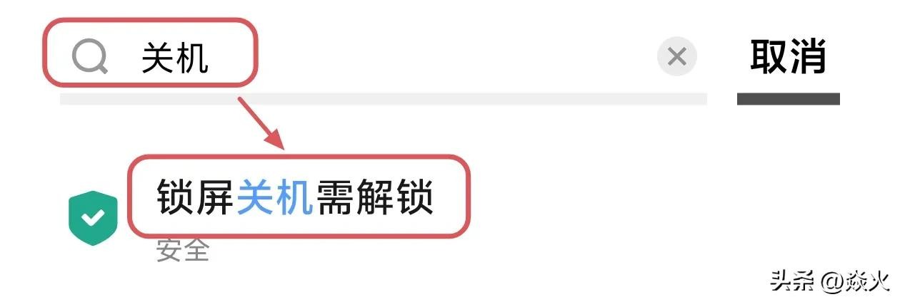 其实针对这种情况呀,手机厂商也做了调整,我们打开手机的设置,在顶部这里搜索“关机”两个字,会出现一个“关机验证密码”。