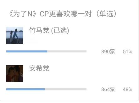 之前发起的《为了N》CP更喜欢哪一对,差距并不大呢