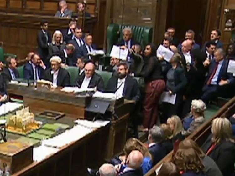 保守党议员跟在伯考身后,一同前往上议院,但许多反对党议员留了下来,还在他们身后发出“耻辱!”的呼喊声。