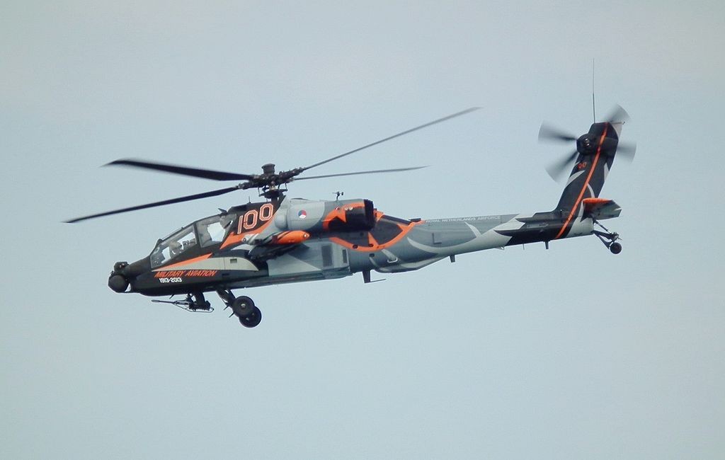 机身上彩绘着军用航空100周年庆祝涂装的荷兰皇家陆军AH-64D。
