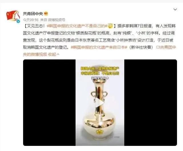 据报道,韩国遗产文化厅申报的文物“银质梨花瓶”,竟然是日本的一件工艺品。这件工艺品底部有刻有“纯银”、“小林”字样,经调查发现,该工艺品是日本东京著名工艺店小林钟表坊涉及打造的。