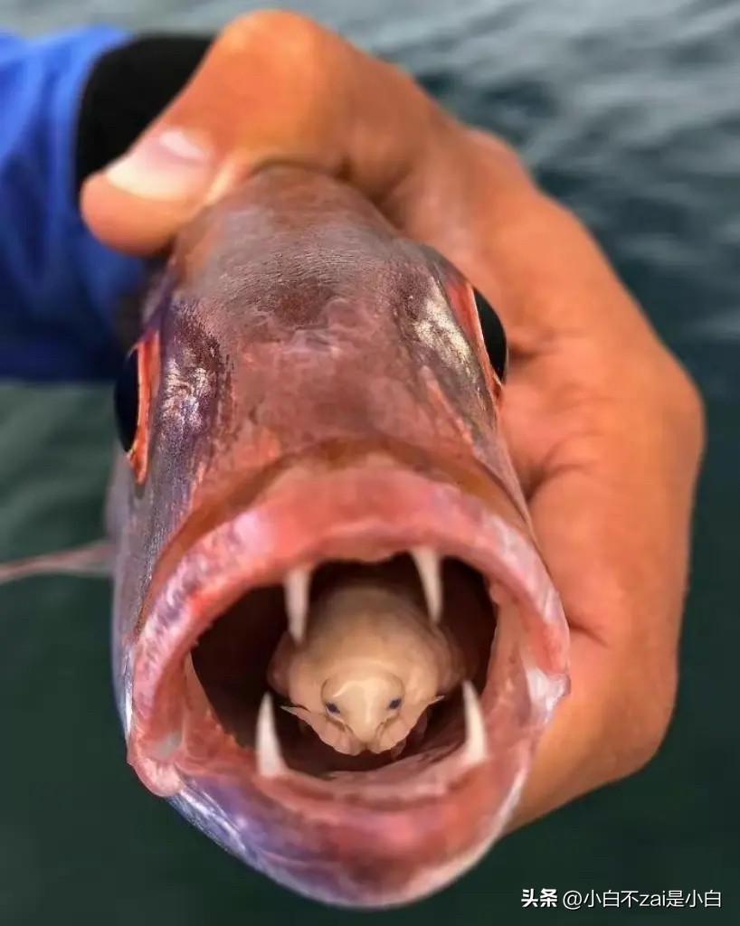 7、一条被食舌虱寄生的鱼,令人发毛,这种寄生虫会吃掉鱼的舌头,然后寄生在喉咙处