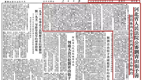 当天,薛迅,河北省委组织部部长,宣读了刘青山、张子善二人的犯罪事实。群众代表孙树林当场控诉他们的罪行。审判过程井然有序,最终由主审官宋志毅宣布判决书,刘青山、张子善二人被执行枪决。