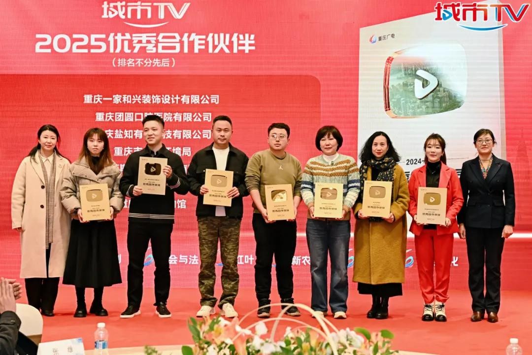 大会现场,还举行了2024年优秀合作伙伴授牌仪式。市广电局、市市场监督管理局相关职能处室负责人,重庆广电集团相关部门负责人,城市 TV 党委成员、各中心正副召集人等参加活动。