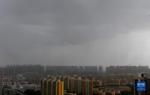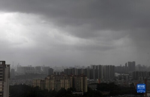 台风“马鞍”来临时的广州上空(8月25日摄)。