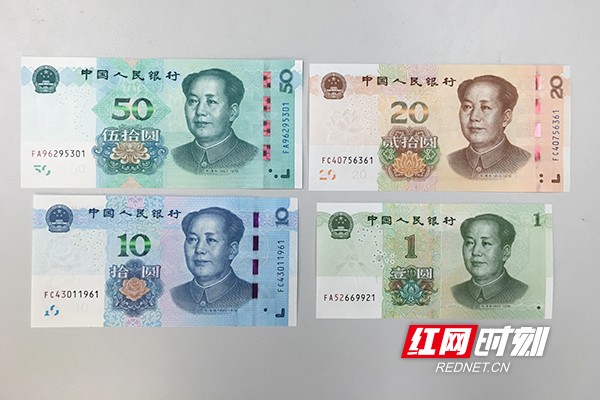 红网时刻8月30日讯(记者 肖娟 吴芳 通讯员 陈慧)根据央行公告,2019年版第五套人民币50元、20元、10元、1元纸币和1元、5角、1角硬币(以下称新版人民币)今日正式发行。今日开始,票面年号为“2019年”的新版人民币将陆续到达银行网点,快来看看长什么样。