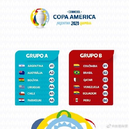 【2020年美洲杯分组:阿根廷、智利、乌拉圭同组】今天,2020年美洲杯抽签结果揭晓,阿根廷、澳大利亚、玻利维亚、智利、巴拉圭、乌拉圭同在南区;哥伦比亚、巴西、厄瓜多尔、秘鲁、委内瑞拉、卡塔尔同在北区。本届美洲杯由阿根廷和哥伦比亚联合举办,共有12支球队参加,分为2个小组,小组赛前4晋级8强。澳大利亚和卡塔尔作为被邀请球队,持外卡参赛。另外值得一提的是,2020年美洲杯比赛将在2020年6月12日至7月12日进行,比赛日期和2020年欧洲杯完美“撞车”!
