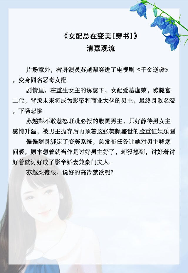 短评:穿电视剧豪门现言,女主又软又甜,在现代因为脸上有胎记被父母抛弃,靠跑龙套跌跌撞撞长大,一不小心穿成电视剧中的炮灰女配。原主生父出轨抛妻弃女,母亲为了养活原主生生熬死了自己,生父与原主相认是为了让她代替原女主嫁给“穷小子”男主。