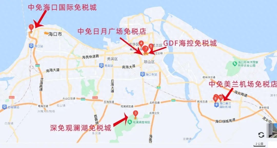 海口国际免税城>深免观澜湖免税城>GDF海控免税城>海口日月广场免税店>美兰机场免税店。