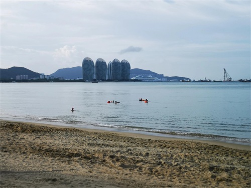 三亚湾沿线海底平缓,风浪很小,是天然浴场。