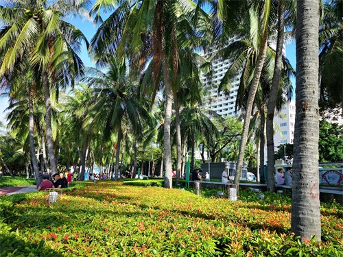 长达二十多公里的三亚湾椰林长廊,是人们休闲锻练、娱乐活动的最佳场所。