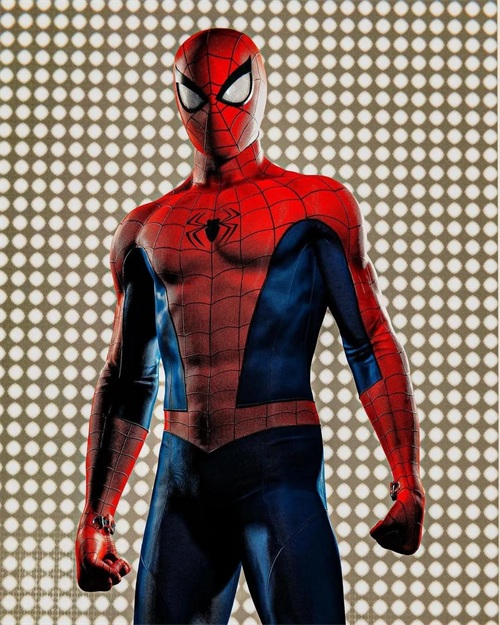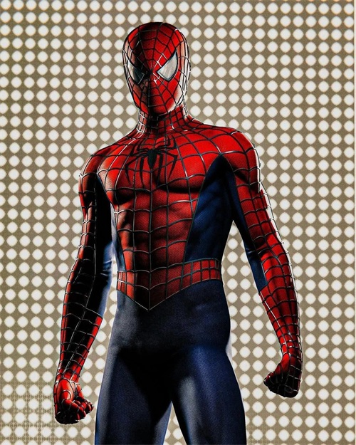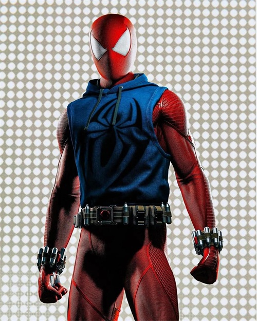 再来一组背身版,这一组背后的蜘蛛标志,根据战服的样式蜘蛛的形态也不相同,白色的蜘蛛标志最好看!紧身的战服从背部看出蜘蛛侠的身材非常棒!