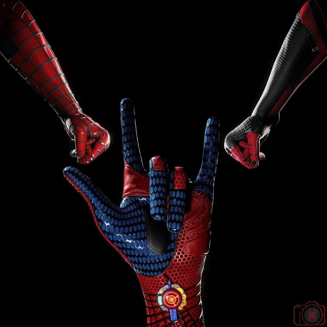 这一组大家仔细看一看,三个不同的手腕,是不是代表三个不同宇宙的蜘蛛侠将联手维护宇宙和平?