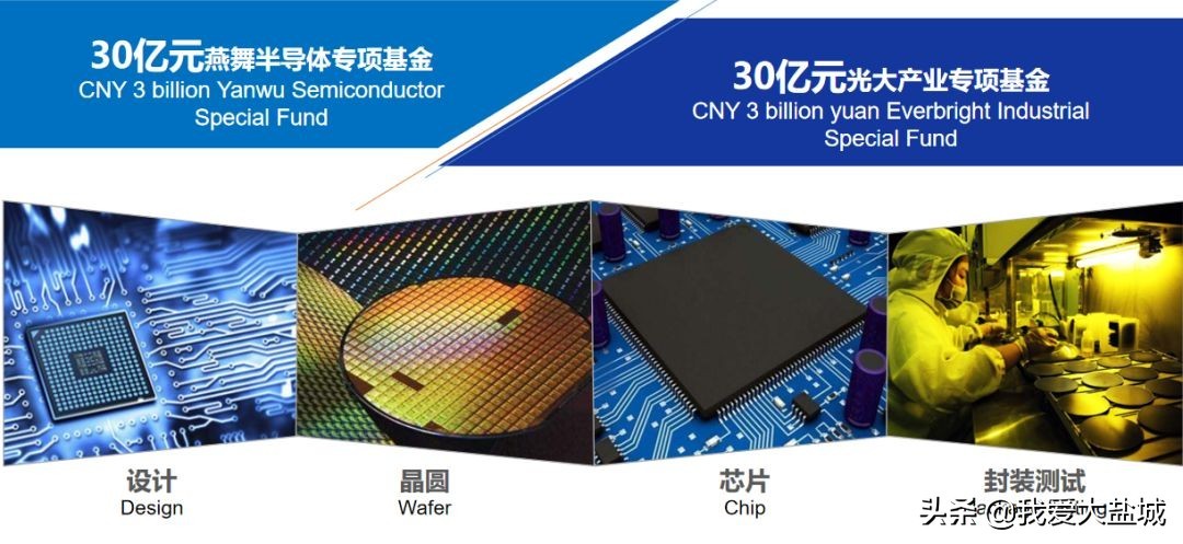聚焦智能终端、集成电路、人工智能等领域,新组建30亿元燕舞半导体、30亿元光大产业等专项基金,期待引进设计、晶圆、芯片、封装、测试等产业链项目,打造中国电子信息江苏产业基地。