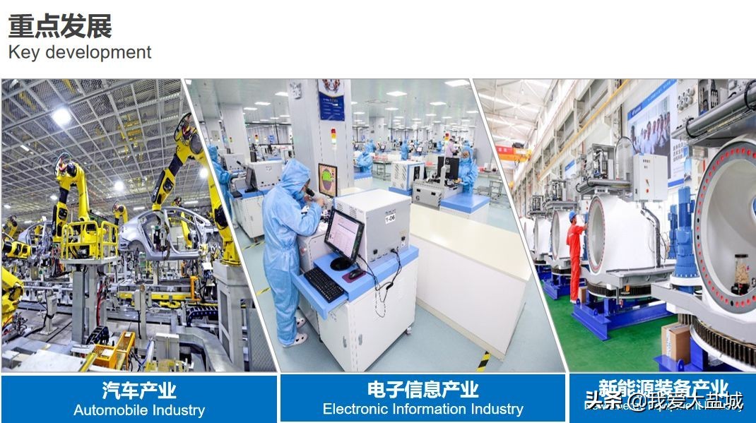 这里重点发展汽车、电子信息和新能源装备产业,积极培育临港产业和现代服务业,拥有韩国现代、摩比斯、法国佛吉亚、润阳、天合、阿特斯、英锐等各类企业2612家,致力打造以新能源、新材料、新技术、新模式为核心的现代产业体系。