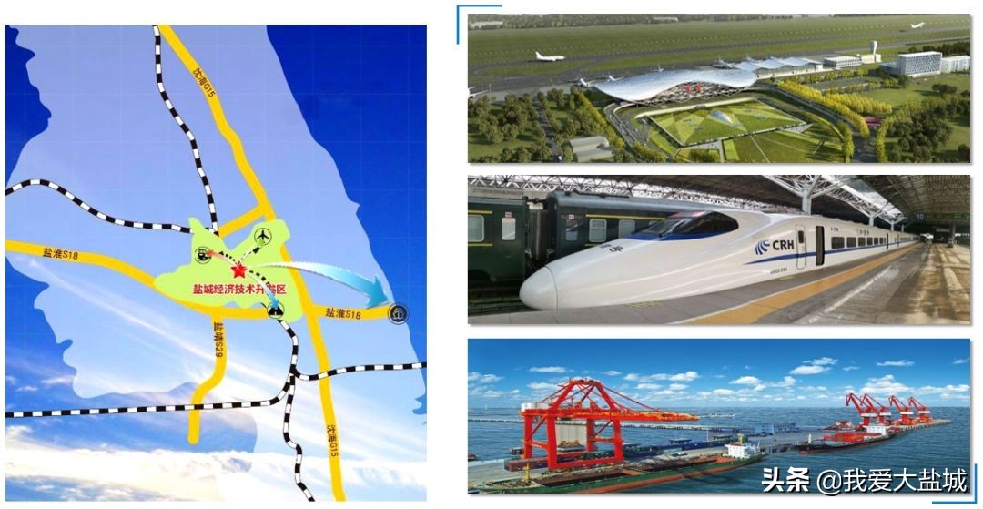 这里毗邻南洋国际机场、大丰港、滨海港三个一类开放口岸,拥有直通盐城内河港步凤港的海河联运优势,高铁、高速公路快捷方便,内环高架市区通达,是全国唯一的10分钟内上高架、入高速、坐高铁、乘航班的开发区。