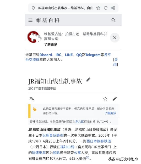 1、原文登载于维基百科:《JR福知山线出轨事故》