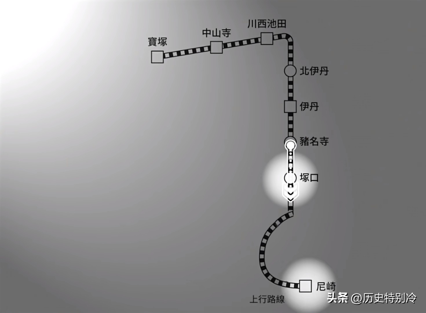随着列车通过了塚口站,距离终点站大板中间只剩下了尼崎站,在该站与上一站塚口站之间,有一条弧度较大的弯道,列车在进入弯道前必须要降低车速。
